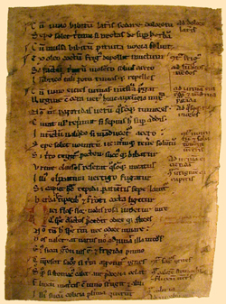 ![]() ![]() Two manuscript leaves from the so-called Macer Floridus De Viribus Herbarum, the famous medieval Latin poem on the properties of herbs. These leaves are believed to have been written in the mid-12th century. The text titled De Viribus Herbarum (On properties of plants) has been traditionally attributed to Odo de Meung (Odo Magdunensis), who is believed to have lived during the first half of the 11th century and was from Meung on the Loire. Recent research has shown, however, that the De Viribus Herbarum was probably written in an earlier version, perhaps during the tenth century in Germany. The text was further expanded, including new data from the translation of Arabic texts into Latin in Salerno from the end of the 11th century onward. If this is the case, this text is good evidence of the continuity of scientific activity in the Middle Ages: its most ancient parts come from a period when there was a revival of interest in botany and a recovery of the classical tradition, while the most recent additions integrate the contribution of the Arabic world. |