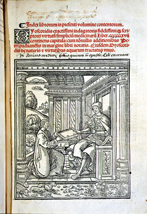 Pietro d’Abano (ca.1250ca.1315), professor of medicine in Padua, traveled to Constantinople and saw one or more Greek manuscripts of Dioscorides’ treatise. Later, he commented on the work, largely by comparing Dioscorides’ data with those provided by Galen (130201) in his treatise of pharmacology (De Simplicium Medicamentorum Temperamentis et Facultatibus, according to the Latin translation of the Greek title). This is the second edition.