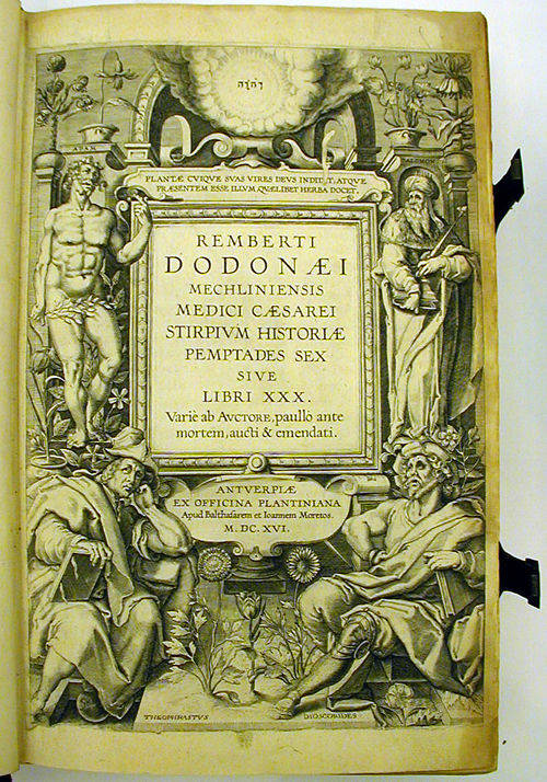 | Dodoens was a follower of Bock and Fuchs, but he produced a Flemish flora, his Cruydeboek (Antwerp, 1554), that moved away from Fuchs’ alphabetical listing of plants. Instead, Dodoens grouped plants by their properties and reciprocal affinities. His Stirpium Historia Pemptades Sex Sive Libri XXX (Antwerp, 1583, 1616) divided plants into 26 groups and included a wealth of new illustrations. Right: HI Archives portrait no. 2. |