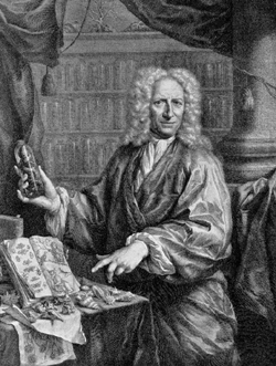 | An apothecary and collector, Seba sold an enormous collection to Peter the Great in 1717 and started over. Linnaeus visited in 1735 while Seba was at work on the second part of his new collection’s illustrated catalogue. Seba’s broad collection practices influenced the shape of Linnaeus’ system, and many of Seba’s animals ended up as type specimens for Linnaeus’ descriptions. Right: HI Archives portrait no. 1. |