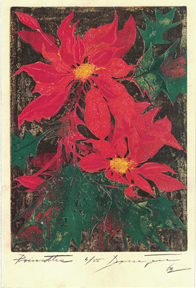 Continuing in our ghosts of holiday cards past series, we are pleased to present the one from 1964, which had been missing until our summer of organization yielded one copy and the proof annotated by George Lawrence. Check out the PDF to the right to read about the births of Huntia and our International series and the many other things we were doing in December 1964.