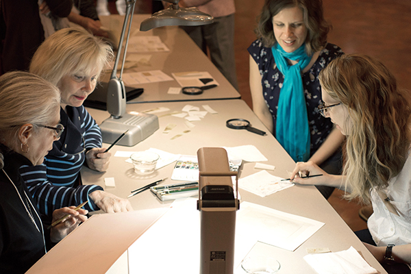 On 20 March 2015 visitors to the Hunt Institute had the opportunity to talk one-on-one with three of the Elements artists, Sue Abramson, Wendy Brockman and Kate Nessler. The artists discussed their concepts and processes and displayed their materials, and Wendy Brockman demonstrated her painting technique.