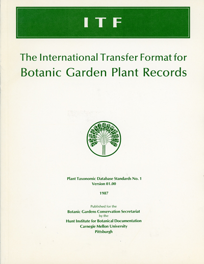 The Plant Taxonomic Database Standards series presents standards for formatting botanical data, prepared by the International Working Group on Taxonomic Databases for Plant Sciences (TDWG) to promote wider and more effective collaboration, dissemination and exchange of information among plant taxonomic databases. This first standard in the series listed the various data items needed in a database on the plants grown in a botanic garden. It explained the meaning of each data item, outlined the rules that pertained to it and showed how it could be categorized and stored, both in manual systems and in the computer. It then provided a format for exchanging electronic plant records that contained these data items.