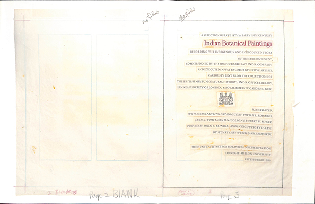 This catalogue of the Institute's first exhibition devoted to Indian botanical art contained introductory essays by Stuart Cary Welch, Curator of Hindu and Muslim Paintings, Fogg Art Museum, Harvard University, and Special Consultant for Islamic Art, The Metropolitan Museum of Art; and by Phyllis I. Edwards, formerly Botany Librarian, British Museum (Natural History) and a preface by John V. Brindle (1911–1991; Hunt Institute Curator of Art, 1961–1982).