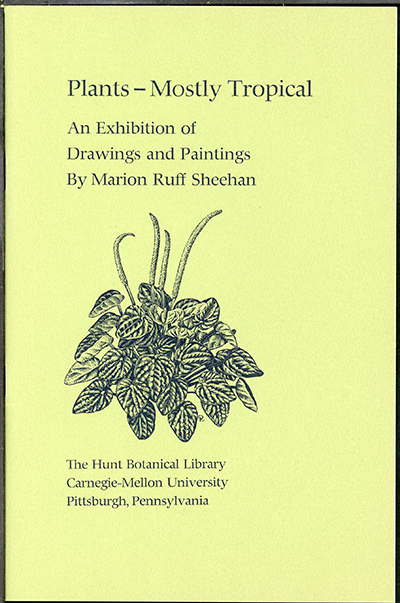 This exhibition catalogue featured biographical information about Marion Ruff Sheehan (also Mrs. Thomas J. Sheehan; 1923–1998) by George H. M. Lawrence (1910–1978; director, 1960–1970), a list of the 72 items displayed and a bibliography of works Sheehan had illustrated.