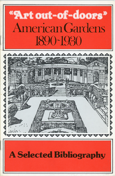 This annotated bibliography of selected influential works in landscape and garden design published during the "Country Place" era in North America was produced in conjunction with a conference on that topic held at the Winterthur Museum and Gardens in March 1979. It also included a foreword by Charles van Ravensway (director emeritus, Winterthur), prefaces by Bernadette G. Callery (Hunt Institute Librarian, 1977–1987) and Scott Swank (head, Education Division, Winterthur) and a bibliography compiled by Julia Finette Davis (Winterthur-NEH Research Fellow).