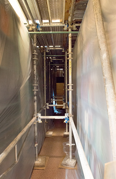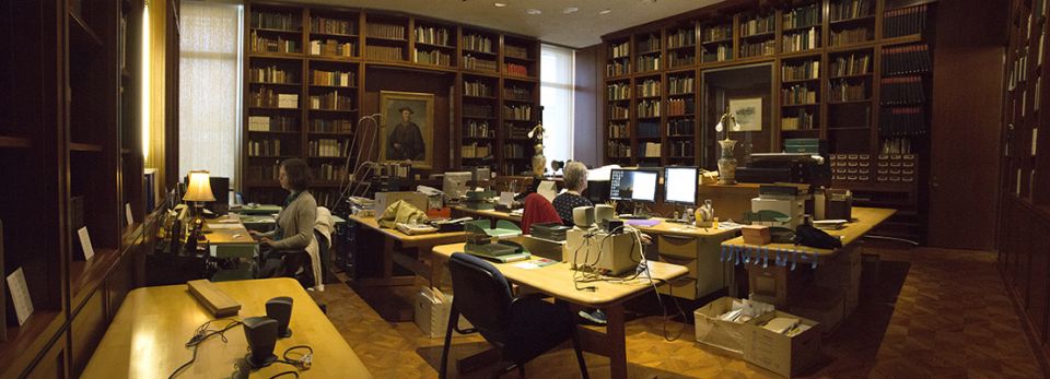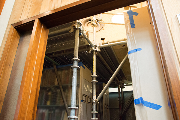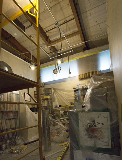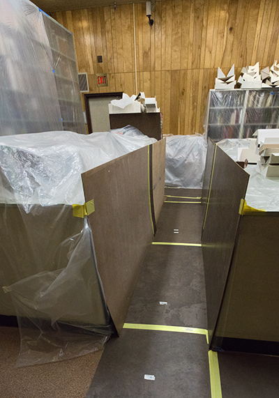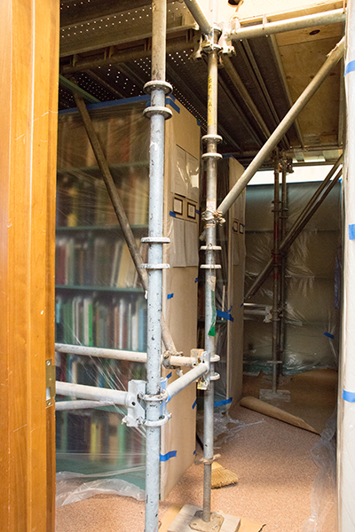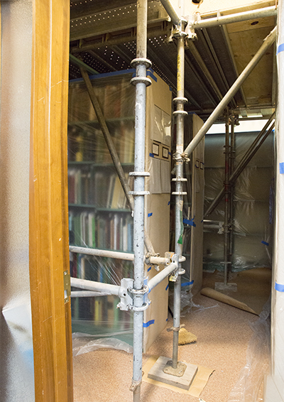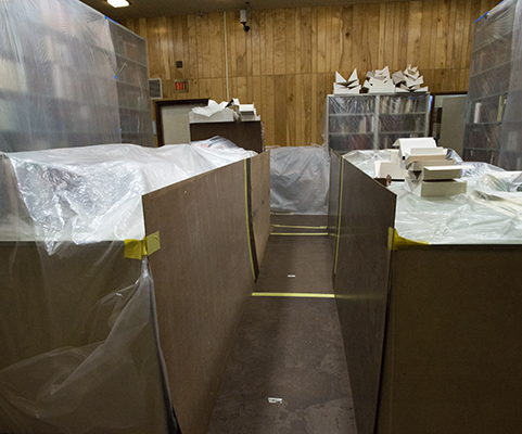 As we move into the final phase of the HVAC system renovation, we're pretty sure our Library is somewhere under the plastic and scaffolding. However, our intrepid librarians, Charlotte A. Tancin and Jeannette McDevitt, soldier on amid the construction with temporary quarters in the Strandell Room. In this series of photographs Graphics Manager Frank A. Reynolds takes us on a tour of our Library.